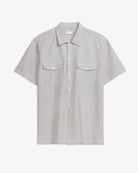 Chambray traces its origins to 16th-century Cambrai, France, where it began as fine linen before evolving into a durable cotton plain weave with a colored warp and white weft. It later became closely tied to American workwear, popularized by U.S. Navy uniforms and laborers in the 19th and 20th centuries, giving rise to the term “blue collar.” Valued for its breathability and distinctive faded look, chambray transitioned from rugged utility to a timeless wardrobe staple. This version nods to those origins with a linen–cotton blend, designed for modern wear. Finished with two chest patch pockets with flaps and a straight hem, it balances classic workwear details with everyday functionality.